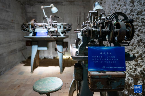 這是5月16日拍攝的中國光學(xué)歷史博物館內(nèi)收藏的螺紋車床。