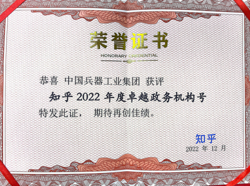 近日,中國兵器工業集團有限公司知乎號、抖音號分獲表彰,其中,集團公司知乎號獲評知乎頒發的“知乎2022年度卓越政務機構號”;集團公司抖音號獲評抖音頒發的2022年政務抖音號“優秀創作者”。